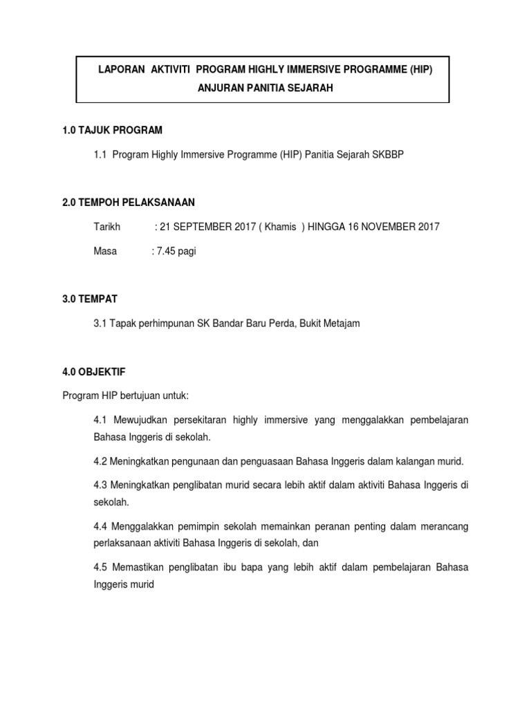 Highly Immersive Program Hip Cadangan Aktiviti Dan Kertas Kerja